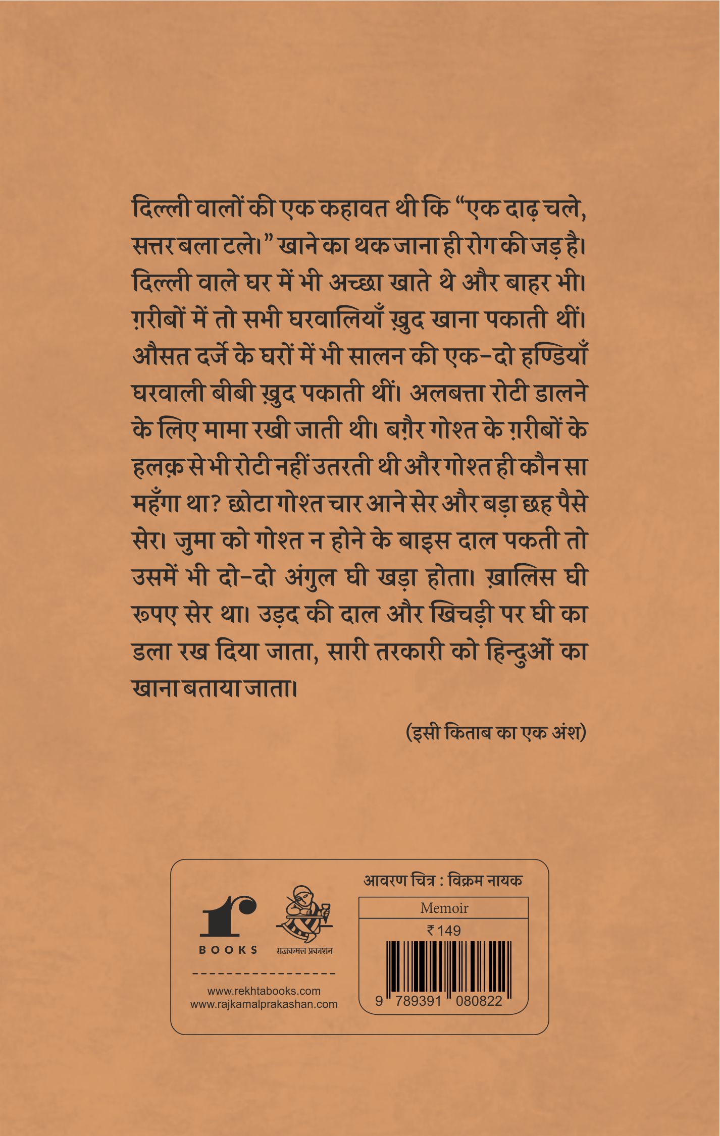 दिल्ली शहर के बार-बार उजड़ने और आबाद होने की कहानी इसे अपने आप में एक ख़ास मुकाम अता करती है और इस शहर की कहानियों को दिलचस्प बनाती है| इस किताब में शाहिद अहमद देहलवी ने अपने ख़ास अन्दाज़ में दिल्ली के बाज़ारों, कटरों और मोहल्ले की खिडकियों का बयान किया है| इस किताब को पढ़ते हुए दिल्ली की गलियों में गूँजती फेरी वालों की सदाएँ और उनके टोकरों, देगों और भट्टियों से उठती हुई महक आपके दिल में उतर जाती है| शाहिद साहब की नज़र से दिल्ली को देखना एक पूरी तारीख़ के गवाह होने के बराबर है|